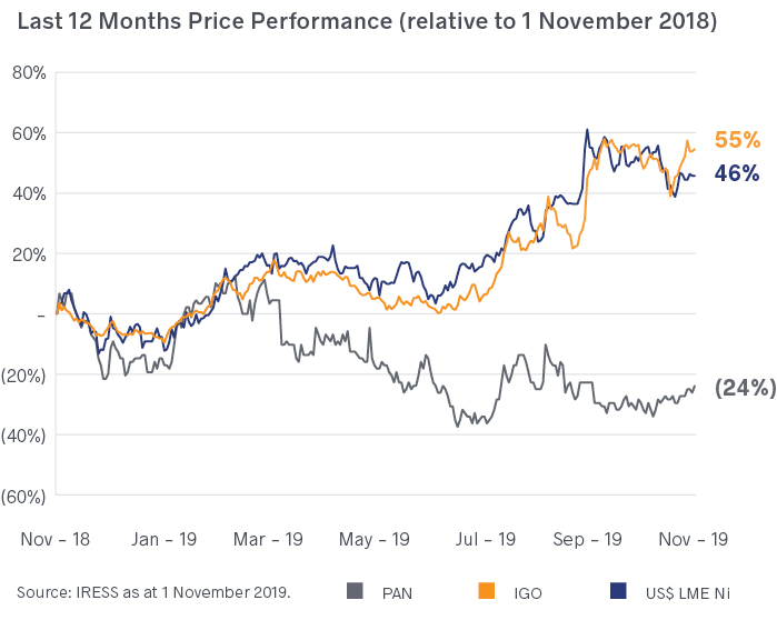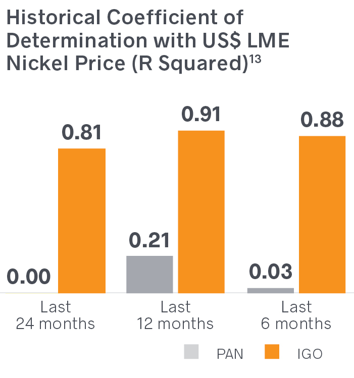 IGO’s share price has historically demonstrated a stronger correlation to movements in the nickel price than Panoramic’s share price.